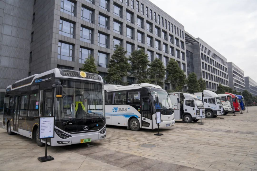 (“成渝氢走廊”启动暨氢燃料电池物流车首发仪式上,搭载888集团6008氢燃料电池的商用车,包括公交车、物流车、工程专用车等。)