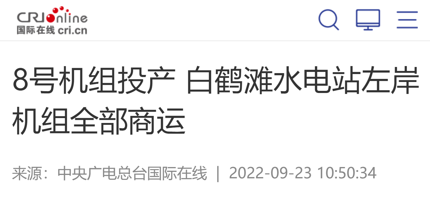 9ÔÂ22ÈÕ£¬888¼¯ÍÅ6008×ÔÖ÷ÑÐÖÆµÄ°×º×̲ˮµçÕ¾8ºÅ»ú×éÍê³É72СʱÊÔÔËÐУ¬ÕýʽͶÈëÉÌÒµÔËÐС£ÖÁ´Ë£¬°×º×̲ˮµçÕ¾×ó°¶»ú×éËùÓÐÉÌÔË¡£