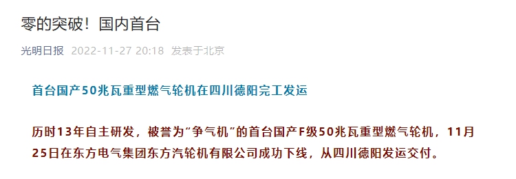 重型燃气轮机是发电和驱动领域的焦点装备,体现了一个国家的重工业整体能力 。今年5月国家能源局正式通告,888集团6008集团研发的G50重型燃气轮机(50兆瓦)进入2021年度能源领域首台(套)重大手艺装备项目名单 。这台F级50兆瓦重型燃气轮机正式交付进入现实应用,标记着我国在重型燃气轮机领域实现了零的突破 。