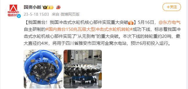 [国资小新]我国首台!我国攻击式水轮机焦点部件实现重大突破