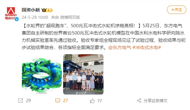 [国资小新]水轮界的“超等跑车”,500兆瓦攻击式水轮机惊艳亮相!