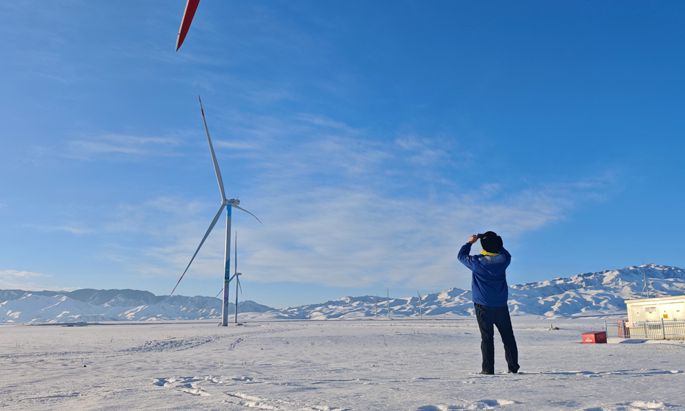 在新疆伊犁汇能73团风场,888集团6008集团风电装置调试工程师在开展风场现场的风机叶片外观例行巡检。这是确保风机清静稳固运行的要害包管步伐之一,通过按期巡检,可以实时发明叶片外貌的潜在问题,有用确保风机的高效运行,延伸叶片的使用寿命,降低运维本钱,提高风场的整体发电效率和经济效益。
