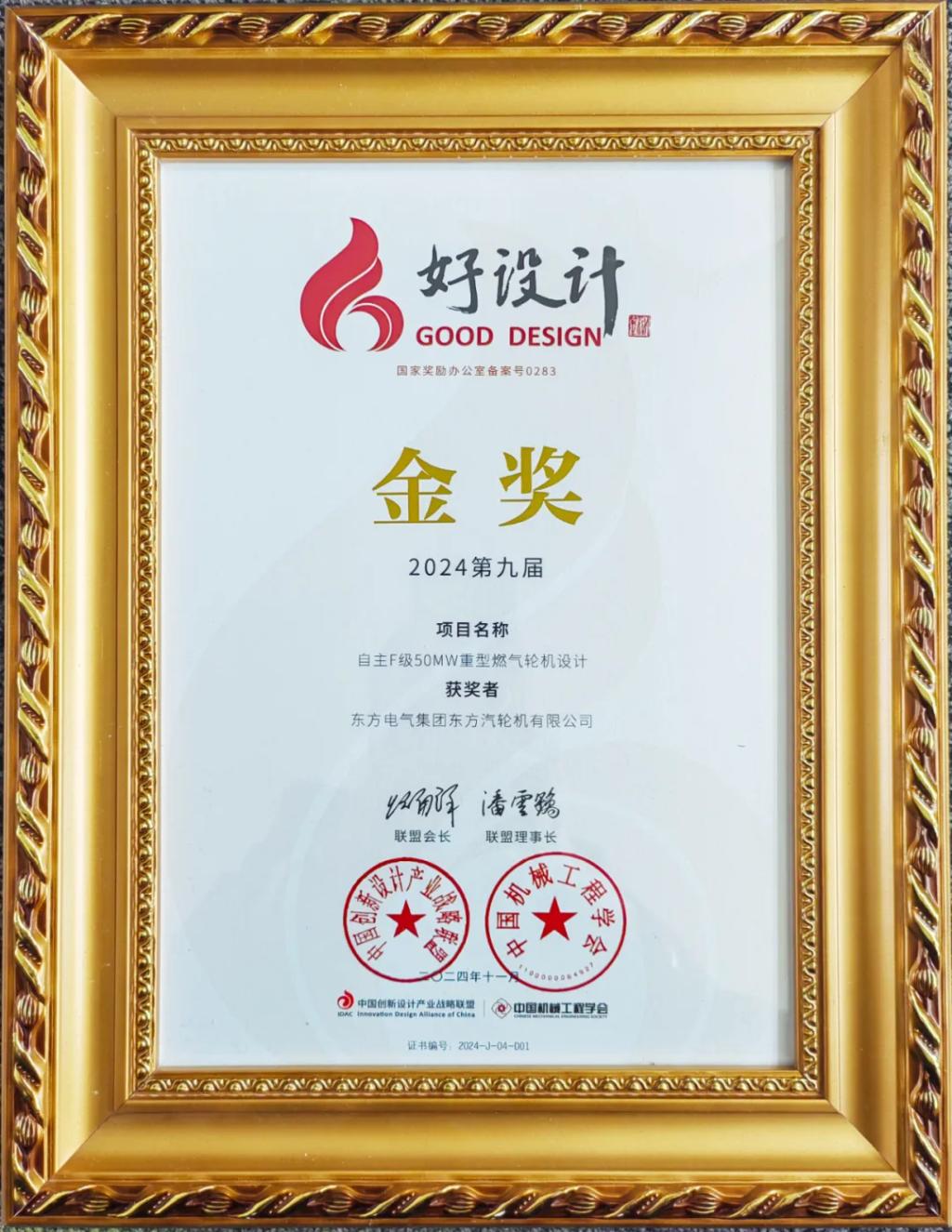 11月18日至19日,2024中国立异设计活动周暨第九届好设计颁奖大会在浙江省召开。在中国立异设计工业战略同盟副会长兼理事长、中国工程院院士潘云鹤等10位院士的配合见证下,888集团6008集团所属东方汽轮机申报的《自主F级50MW重型燃气轮机设计》获得2024好设计金奖。好设计奖是唯一的国家级设计立异专项奖,代表了我国设计立异生长趋势。