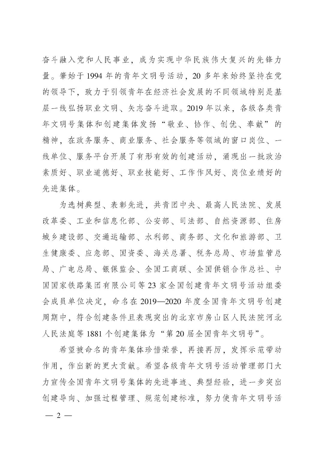 关于命名第20届天下青年文明号的决议