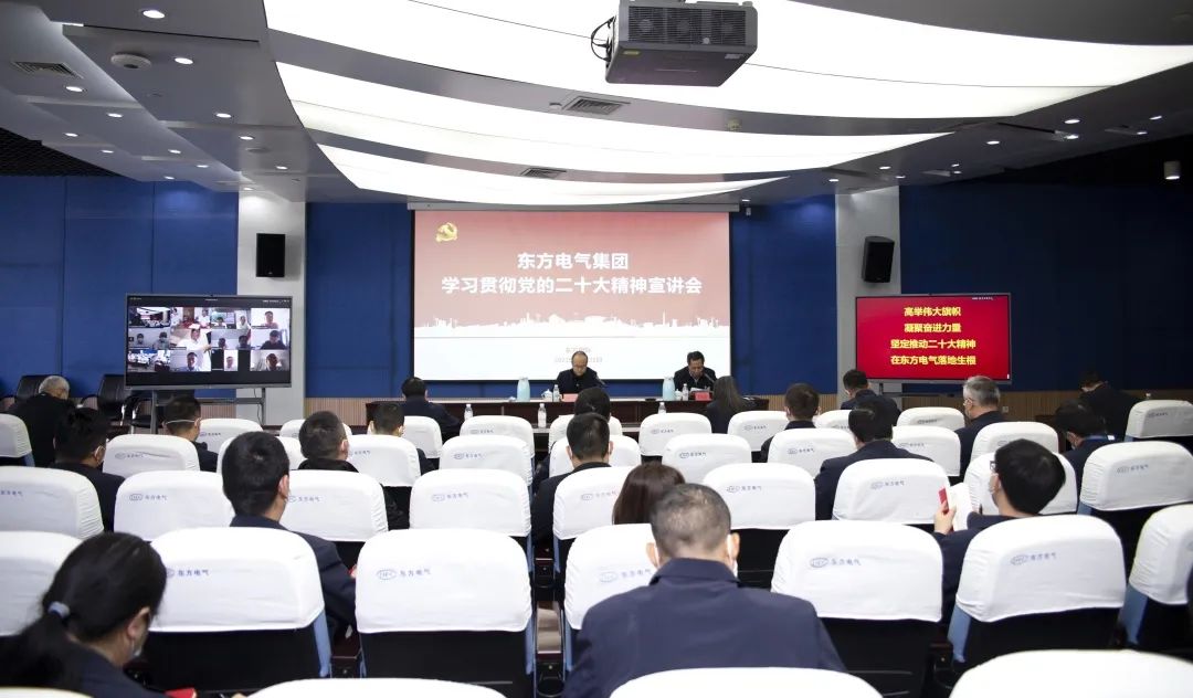 11月10日,党的二十大代表,集团公司党组书记、董事长俞培根深入“绿色智造”一线,为东方电机党员干部职工宣讲党的二十大精神。俞培根从“七个深刻掌握”对全集团团结现实深入贯彻落实党的二十大精神作出系统安排,特殊是对东方电机在加速建设天下一流企业、提升科技立异支持作用、加速绿色低碳转型生长、释放企业刷新活力动力、以高质量党建引领包管高质量生长等方面提出明确要求。