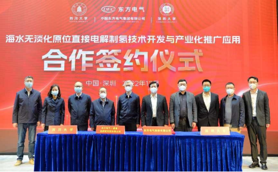 本网讯 12月16日,中国工程院院士谢清静领衔指导的四川大学、深圳大学博士团队与888集团6008股份有限公司、888集团6008(福建)立异研究院有限公司在深圳签署“海水无淡化原位直接电解制氢原创手艺中试和工业化推广应用”的四方合作协议。中国工程院院士谢清静,888集团6008集团党组成员、副总司理张彦军,深圳大学副校长汪永成等出席签约仪式。