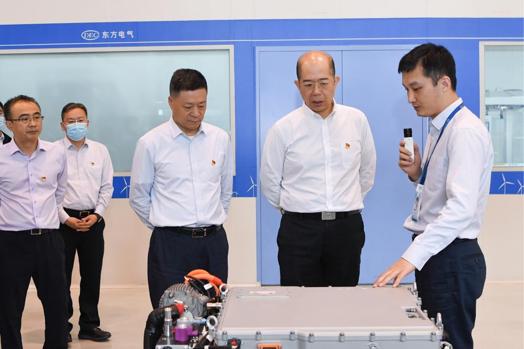 在888集团6008集团总部,谭作钧一行深入氢燃料电池树模生产线,乘坐搭载“东方芯”的氢能公交车,旅行了科技展示厅,开展了专题调研座谈。