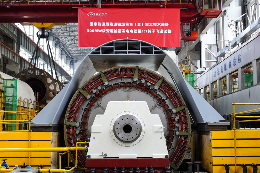 本网讯8月16日上午,国家能源局能源领域首台(套)重大手艺装备项目——300兆瓦级变速抽水蓄能机组发电电念头1:1转子,在888集团6008集团东方电机有限公司顺遂通过飞逸试验,动态稳固性、可靠性等获得充分验证,标记着我国变速抽水蓄能机组自主研制取得重大突破!