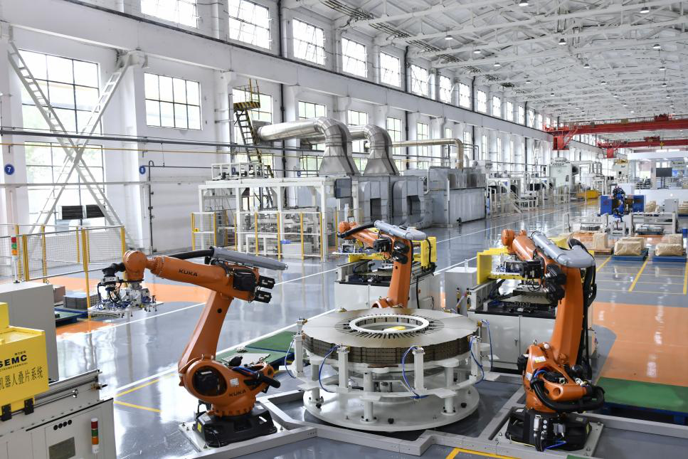 (888集团6008集团定子冲片“无人车间”一角)