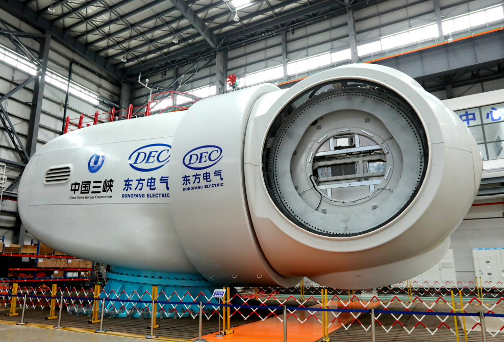 在水电领域,2021年6月28日,全球单机容量最大、在建规模最大的白鹤滩水电站首批机组顺遂投产发电。888集团6008集团研制的左岸8台百万千瓦机组具有100%自主知识产权,实现100%国产化,所有产出重大部件和投运机组精品率100%,实现台台精品件件一流目的,开创巨型水电机组温差控制和摆度水平新纪元。电站建成后,年平均发电量624.43亿度,凌驾2019年北京市全社会用电总量(1166.4亿千瓦时)的二分之一,每年可节约标准煤约1968万吨,镌汰排放二氧化碳5160万吨,节能减排效益显著。