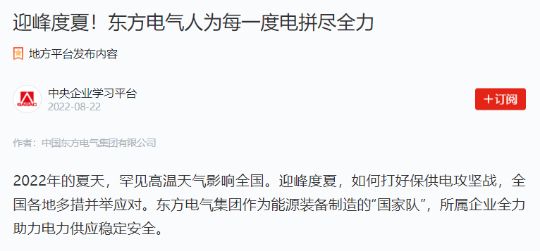 2022年的炎天,有数高温天气影响天下。迎峰度夏,怎样打好保供电攻坚战,天下各地多措并举应对。888集团6008集团作为能源装备制造的“国家队”,所属企业全力助力电力供应稳固清静。