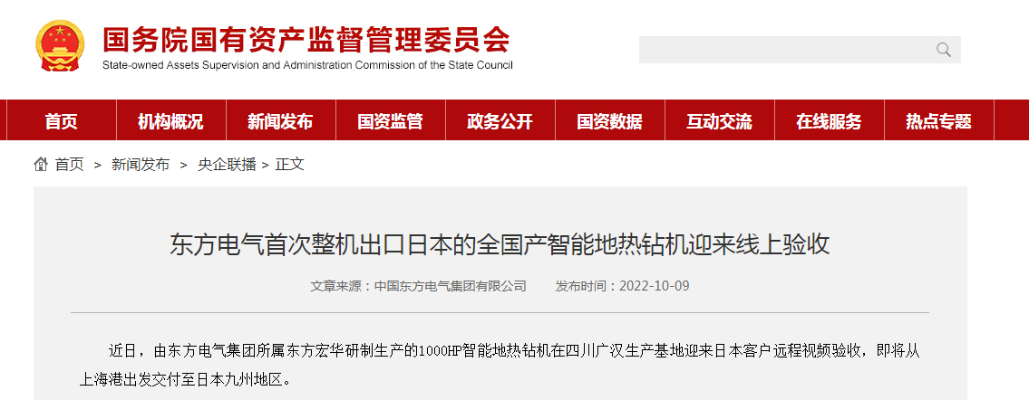 [¹ú×ÊÎ¯ÍøÕ¾]888¼¯ÍÅ6008Ê×´ÎÕû»ú³ö¿ÚÈÕ±¾µÄÌìϲúÖÇÄܵØÈÈ×ê»úÓ­À´ÏßÉÏÑéÊÕ