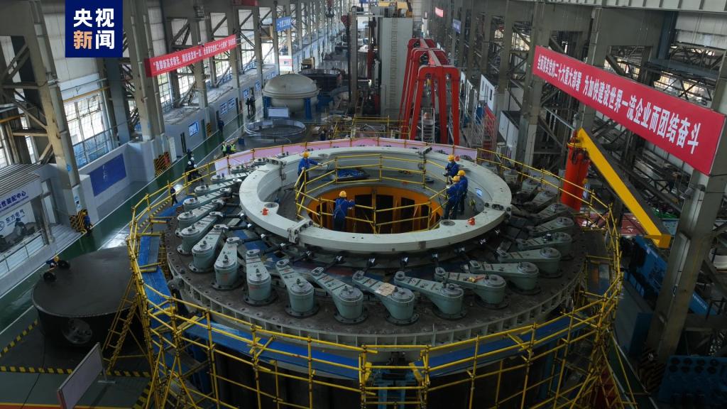 [央视新闻客户端]葛洲坝170兆瓦水电机组刷新2号机导水机构在四川德阳乐成下线