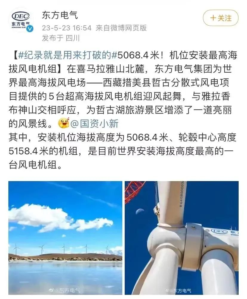 机位装置最高海拔风电机组