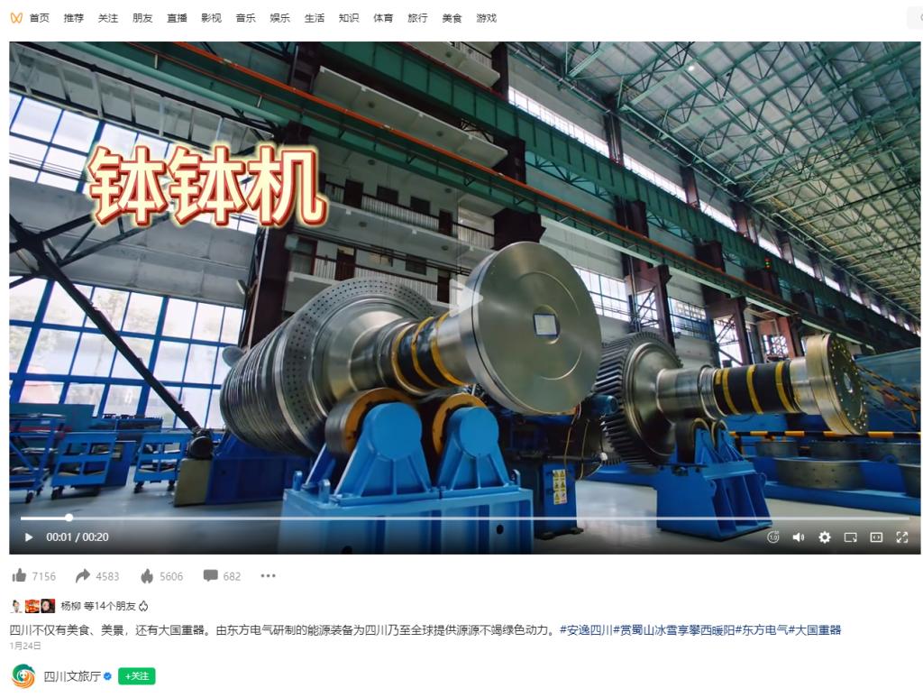 [四川文旅厅]四川不但有美食、美景 ,尚有大国重器。由888集团6008研制的能源装备为四川以致全球提供源源不竭绿色动力。