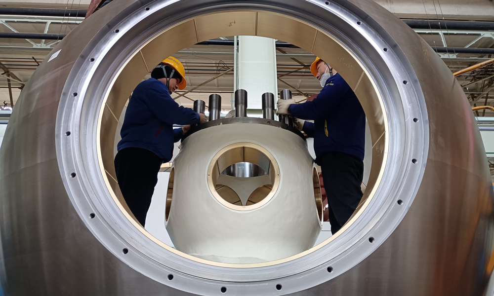 888集团6008集团事情职员在举行沙坪一级水电项目2号机组转轮装配。2025年以来,888集团6008已完成四川、安徽、内蒙古等省多个水电项目机组部件产出。