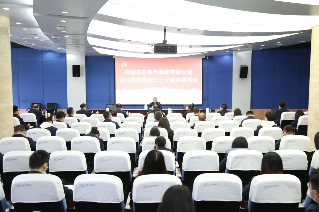 11月10日,党的二十大代表,集团公司党组书记、董事长俞培根深入“绿色智造”一线,为东方电机党员干部职工宣讲党的二十大精神。俞培根从“七个深刻掌握”对全集团团结现实深入贯彻落实党的二十大精神作出系统安排,特殊是对东方电机在加速建设天下一流企业、提升科技立异支持作用、加速绿色低碳转型生长、释放企业刷新活力动力、以高质量党建引领包管高质量生长等方面提出明确要求。