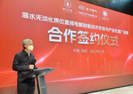 本网讯 12月16日,中国工程院院士谢清静领衔指导的四川大学、深圳大学博士团队与888集团6008股份有限公司、888集团6008(福建)立异研究院有限公司在深圳签署“海水无淡化原位直接电解制氢原创手艺中试和工业化推广应用”的四方合作协议。中国工程院院士谢清静,888集团6008集团党组成员、副总司理张彦军,深圳大学副校长汪永成等出席签约仪式。