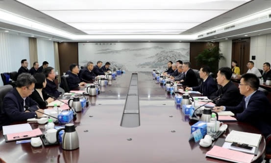 俞培根与中核集团党组书记、董事长余剑锋就配合服务国家战略、进一步深化双方战略合作、拓展合作领域、增强资源协一律举行了友好交流。中核集团党组成员、副总司理申彦锋,党组成员、总会计师王学军加入谈判。